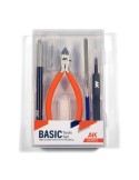 Set de herramientas básicas con pinzas, alicate, cúter y lima. Ideal para iniciarse en el modelismo o como kit esencial para trabajos de precisión en miniaturas