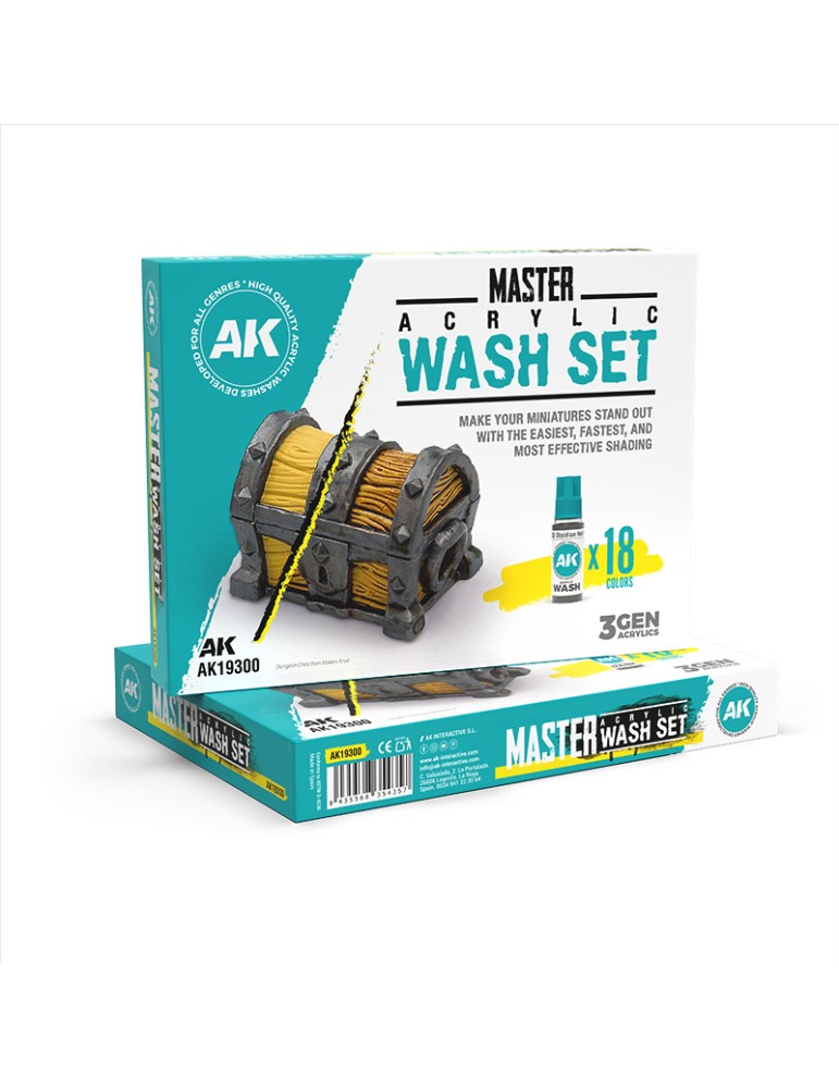 El Master Acrylic Wash Set – Full Range (18 Colors) es la solución definitiva para lograr sombras profundas, definición y volumen en tus miniaturas de forma sencilla y efectiva. Los lavados son una de las herramientas más utilizadas en el hobby, y este set reúne toda la gama para que tengas siempre el tono perfecto a mano.