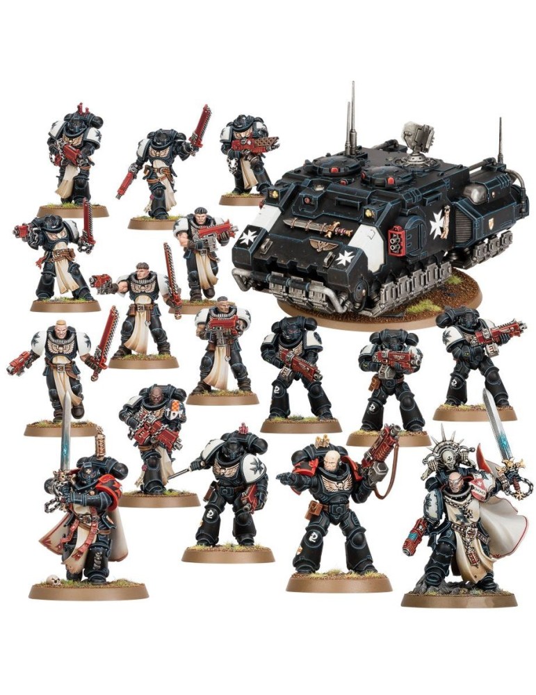 Esta Patrulla está diseñada para darte una fuerza equilibrada, ideal para partidas del formato Patrulla. Liderada por un Mariscal Primaris, acompañada por cruzados veteranos, intercesores y un rápido Impulsor, esta caja te permite desplegar el fervor de los Templarios Negros desde el primer turno.