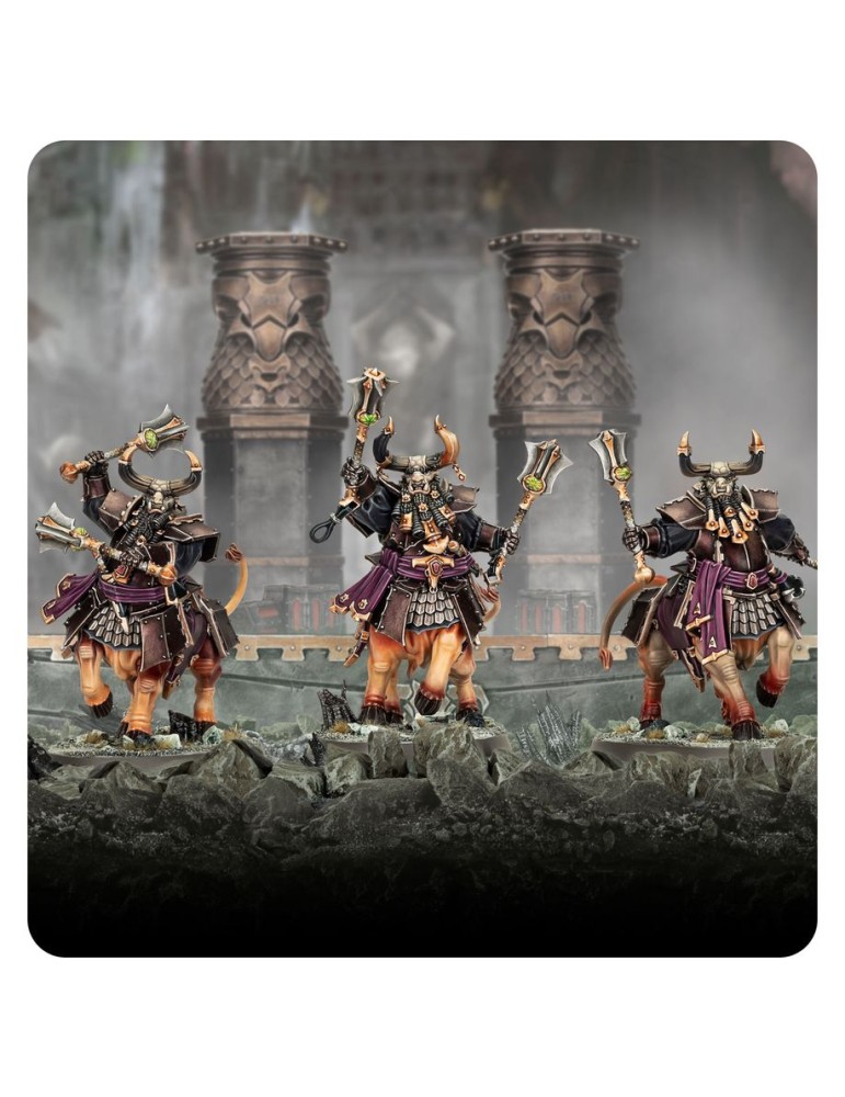 Desata la furia de Hashut con los Toros Centauros, bestias sagradas y rompelíneas implacables que arrasan al enemigo bajo cascos, mazas y fuego infernal.