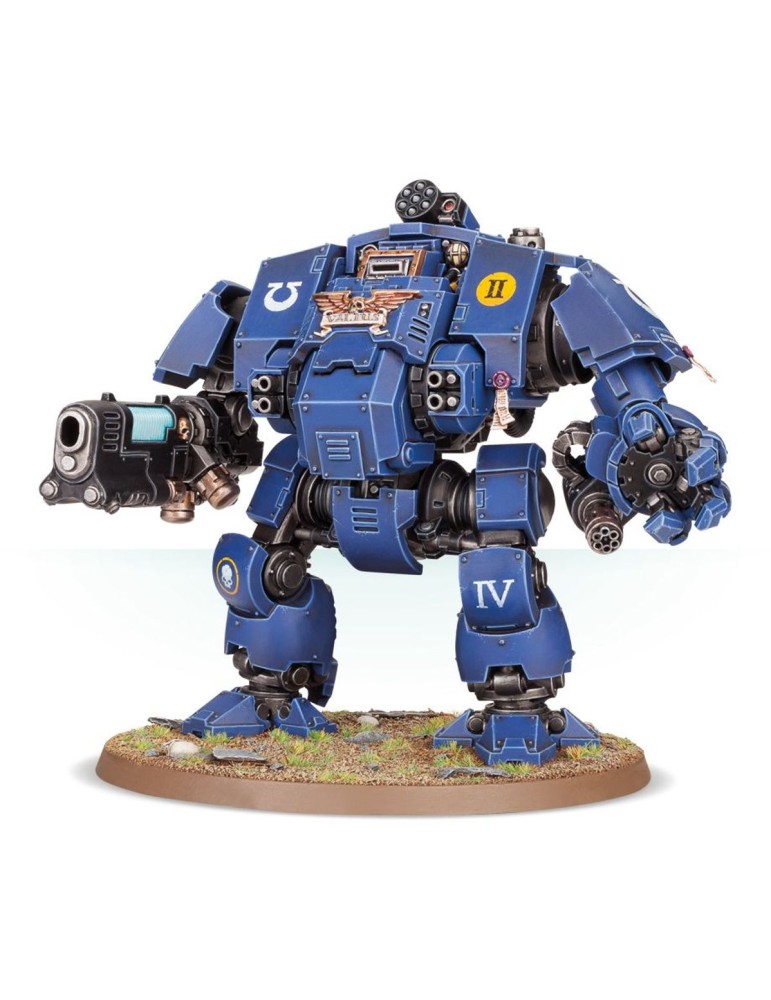 Los Redemptor Dreadnoughts son gigantescas máquinas de guerra que aplastan huesos y revientan cráneos mientras se abren paso a través de las filas enemigas. Más altos, corpulentos y astutamente diseñados que los Dreadnoughts de diseño tradicional, estos goliats están alimentados por reactores hiperdensos y sofisticados paquetes de fibras. Pueden acelerar de un paso ruidoso a una marcha de grandes zancadas que hacen temblar el suelo, atravesando lluvias de fuego sin inmutarse. El diseño de los vínculos neuronales del Redemptor es tan milagroso que su habitante, a pesar de estar sepultado en el sarcófago dentro del pecho del Dreadnought, puede ejercer control con una destreza y velocidad sorprendentes.