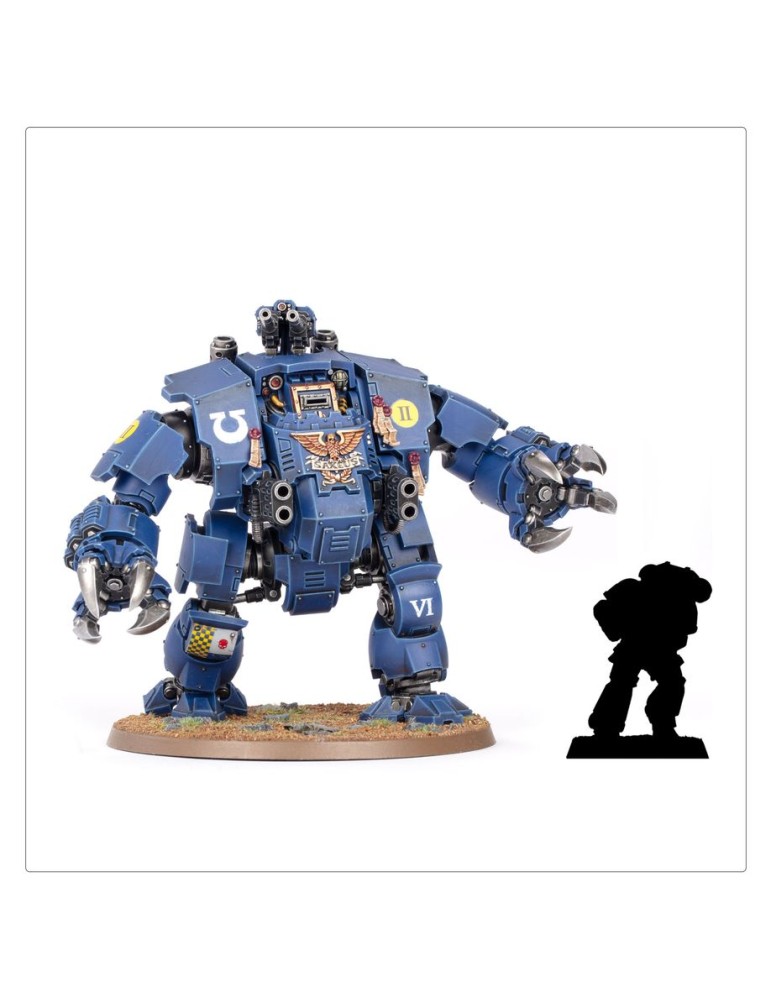 El Dreadnought Brutalis encarna la furia imparable de los Marines Espaciales. Pilotado por un héroe caído del Capítulo, este bípode blindado avanza como una muralla de adamantio, lanzando fuego de cobertura mientras se prepara para destrozar al enemigo en combate cuerpo a cuerpo. Sus brazos colosales, ya sean puños blindados o espolones afilados, convierten en chatarra a tanques y parten en dos a guerreros acorazados con una brutalidad aterradora.
