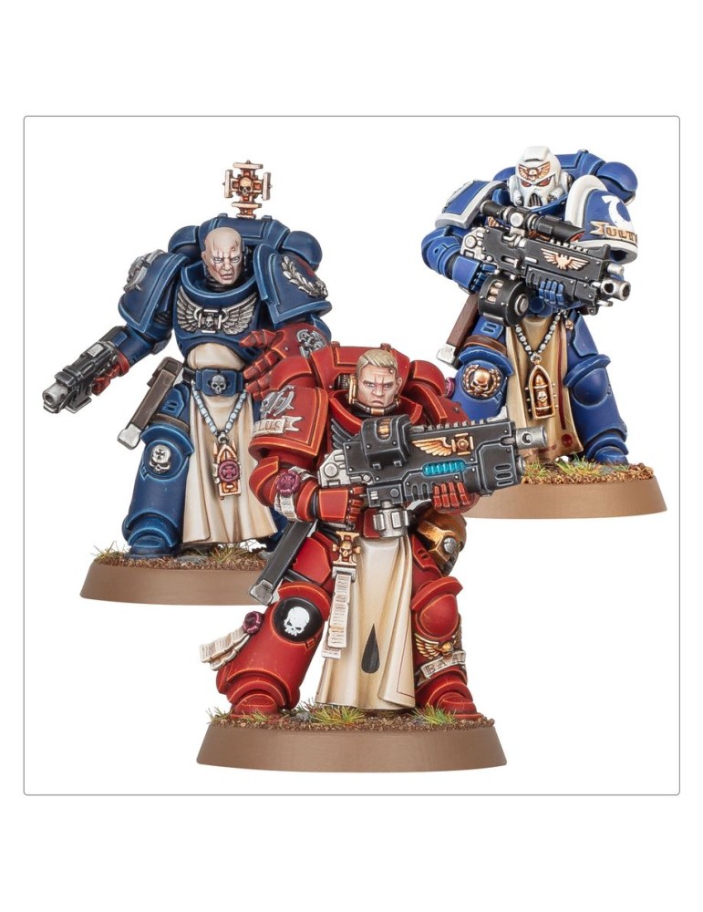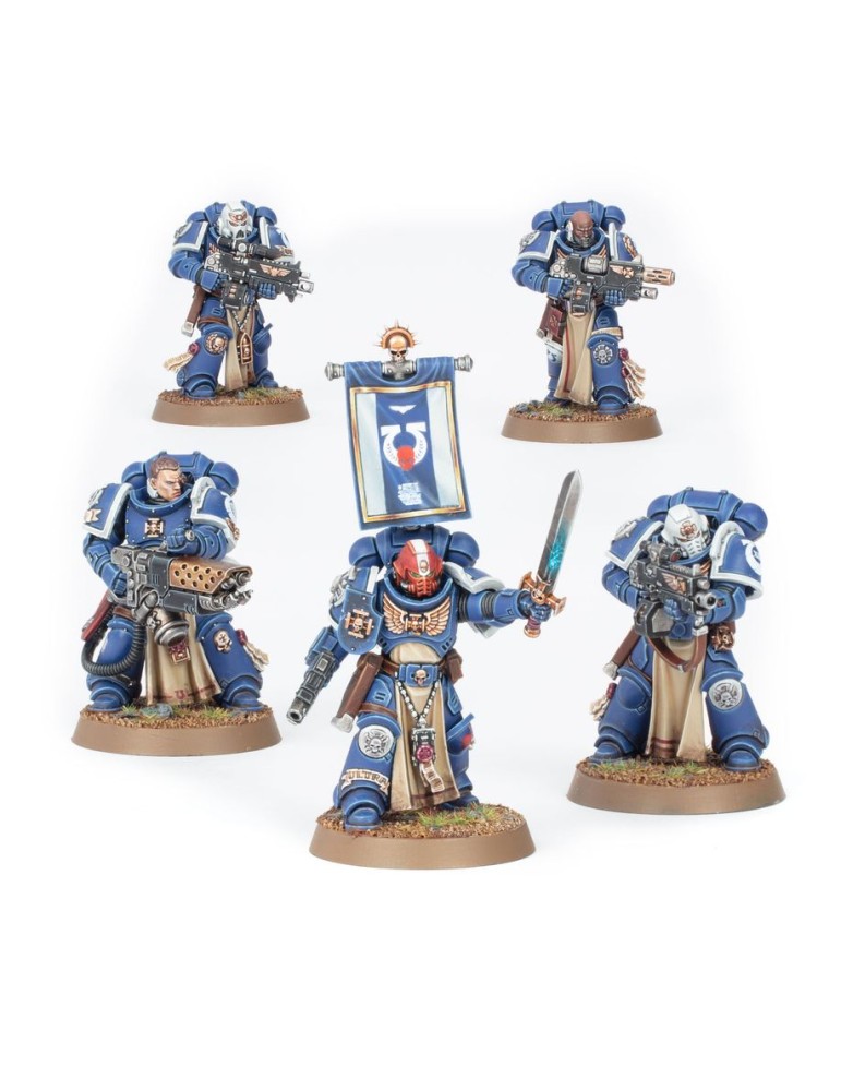 Escuadra de 5 Veteranos de Retaguardia, tiradores de élite de los Marines Espaciales. Incluye múltiples armas y opciones de personalización estética.