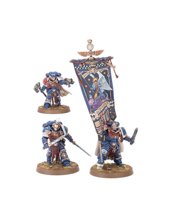 Otro puede montarse como Anciano del Capítulo, portador del Estandarte de Macragge, un símbolo de inspiración y gloria para todos los hijos de Ultramar.