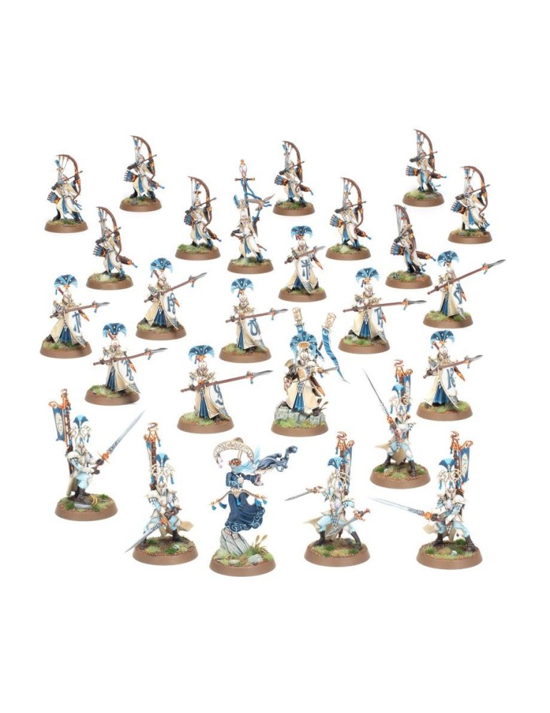 Esta caja es ideal para iniciarte en los ejércitos de Hysh o para reforzar tu colección existente, y resulta más económico que adquirir las unidades por separado. Es perfecto para partidas en formato Punta de lanzamiento de Age of Sigmar , con un ejército completo, equilibrado y listo para desplegarse.