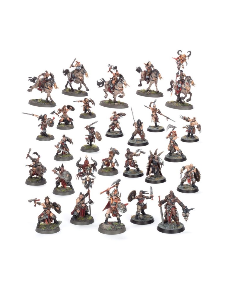 Los Darkoath son bárbaros endurecidos por la guerra y la supervivencia, nacidos en tribus que veneran la fuerza y sellan su destino con juramentos sangrientos a los Dioses del Caos. Esta Punta de lanza reúne una horda salvaje y letal, perfecta para arrasar los Reinos Mortales al servicio de la oscuridad.