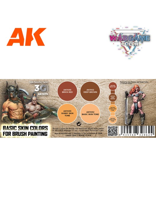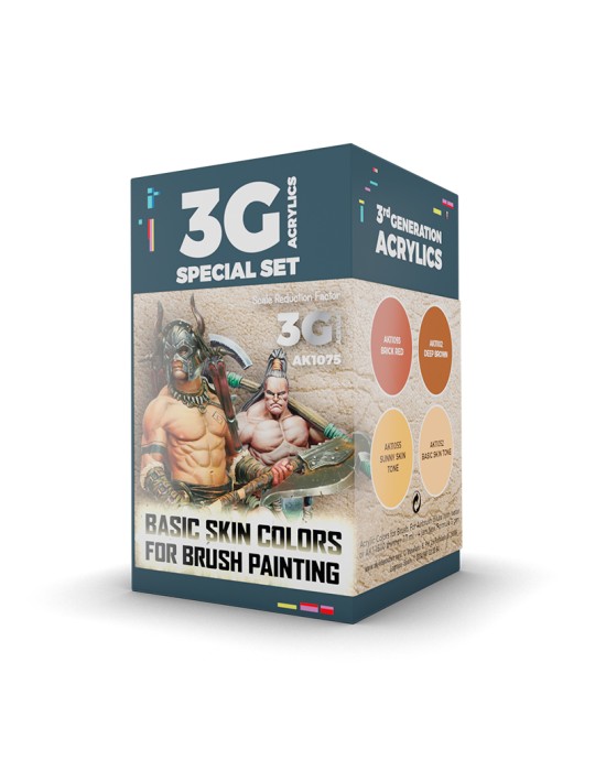 El Wargame Color Set: Basic Skin Colors de AK Interactive es la base perfecta para pintar tonos de piel realistas en tus miniaturas. Este set incluye cuatro colores acrílicos 3Gen seleccionados para trabajar luces, sombras y transiciones suaves, logrando acabados naturales en figuras humanas, héroes o soldados.