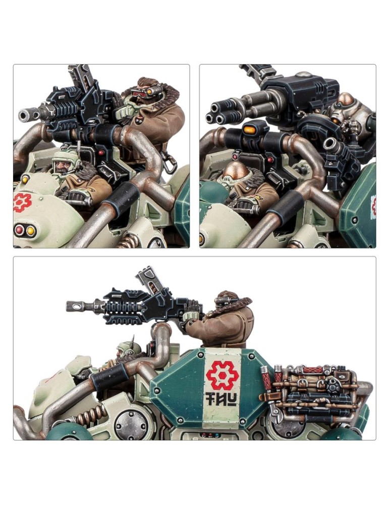 Los Káprica son vehículos de diseño modular altamente avanzados utilizados por las Ligas de los Votann. Rápidos, resistentes y extremadamente funcionales, están diseñados para cumplir misiones clave en el campo de batalla, ya sea arrasando enemigos desde la distancia o transportando tropas vitales hacia posiciones estratégicas.